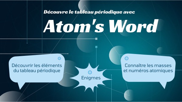 Ce mode est certainement le plus important et le plus interessant. En effet maintenant que tu as créer des mots et des codes, tu va pouvoir passer à des choses plus concrettes. Fait donc des recherches sur les éléments chimiques que tu as utilisé (culture général, propriétés chimiques, utilisations ...) Va donc le Padlet mis en lien et publis tes énigmes voir même résouds celles des autres utilisateurs !