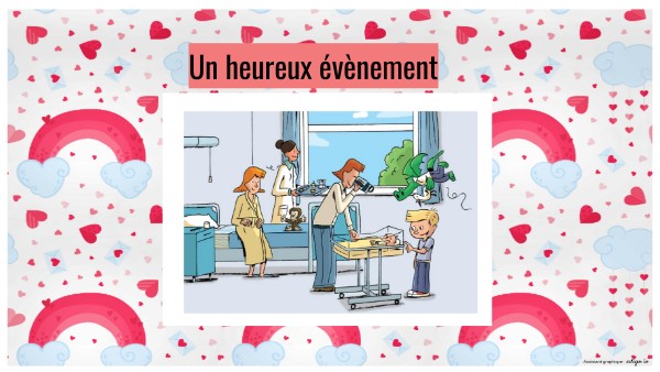 – Où se passe la scène ? – Que font Hugo et Taoki? – Qui peut-être le bébé ? – Que fait le papa d'Hugo ?
