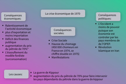 - augmentation du prix du pétrole de 70% pour faire intervenir les pays dépendants du pétrole dans la guerre de kippour