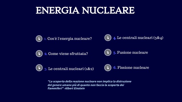 "La scoperta della reazione nucleare non implica la distruzione del genere umano più di quanto non faccia la scoperta dei fiammiferi" -Albert Einstein
