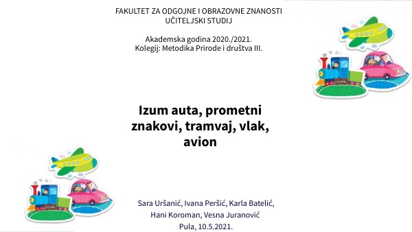 Izum auta, prometni znakovi, tramvaj, vlak, avion