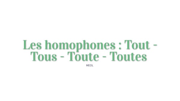 Les homophones : Tout - Tous - Toute - Toutes
