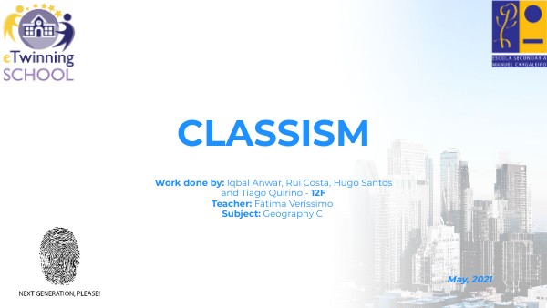 https://www.med.wisc.edu/news-and-events/2012/june/social-class-discrimination-poorer-health/ (07/04/2021) https://www.beapplied.com/post/social-class-discrimination-and-fairness-in-recruitment (07/04/2021) https://smallbusiness.co.uk/social-class-discrimination-problem-2542974/ (07/04/2021) https://www.vice.com/pt/article/d7gy9q/classismo (07/04/2021) https://www.youtube.com/results?search_query=classism+discrimination (07/04/2021) https://brasilescola.uol.com.br/sociologia/preconceito-classe-social.htm (07/04/2021) https://meuartigo.brasilescola.uol.com.br/sociologia/marcadores-sociais-diferenca.htm (07/04/2021) https://www.todamateria.com.br/preconceito-social/ (07/04/2021) https://monografias.brasilescola.uol.com.br/administracao-financas/as-classes-sociais-as-desigualdade.htm (07/04/2021) https://1drv.ms/w/s!AiiSAtwHZ981qXTYy5HbP6o9E1Cn?e=msxgRc (07/04/2021) https://welovegeography.pt/paises-com-diferentes-niveis-de-desenvolvimento (28/04/2021) https://www.youtube.com/watch?v=uOUOWLeyAbw (02/05/2021) https://en.wikipedia.org/wiki/Caste (02/05/2021)