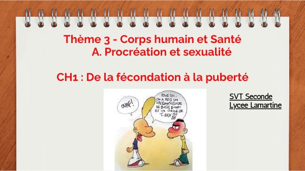 Thème 3 - Corps humain et Santé A. Procréation et sexualité CH1 : De la fécondation à la puberté