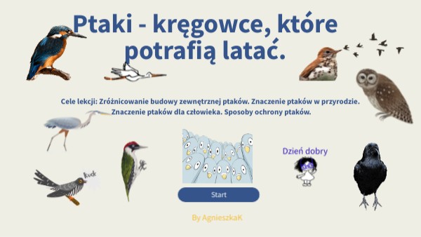 Cele lekcji: Zróżnicowanie budowy zewnętrznej ptaków. Znaczenie ptaków w przyrodzie. Znaczenie ptaków dla człowieka. Sposoby ochrony ptaków.