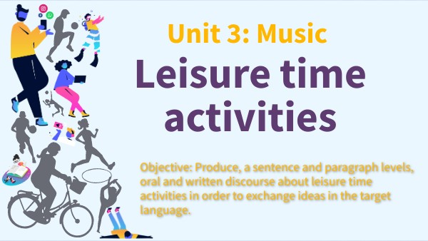 Objective: Produce, a sentence and paragraph levels, oral and written discourse about leisure time activities in order to exchange ideas in the target language.