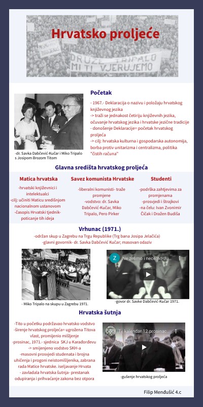 - 1967.- Deklaracija o nazivu i položaju hrvatskog književnog jezika-> traži se jednakost četiriju književnih jezika, očuvanje hrvatskog jezika i hrvatske jezične tradicije - donošenje Deklaracije= početak hrvatskog proljeća -> cilj: hrvatska kulturna i gospodarska autonomija, borba protiv unitarizma i centralizma, politika "čistih računa"