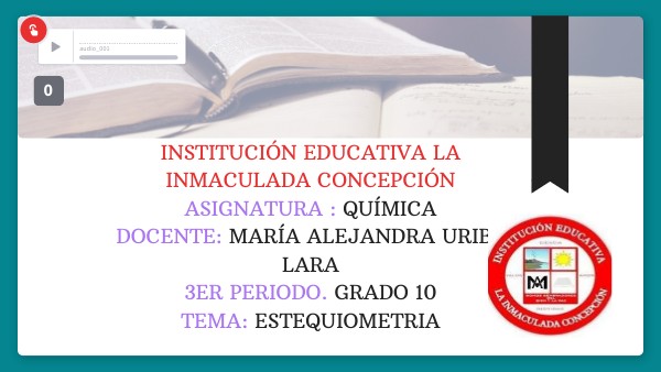 institución educativa la inmaculada concepciónAsignatura : química docente: maría Alejandra Uribe lara 3er periodo. Grado 10 tema: Estequiometria