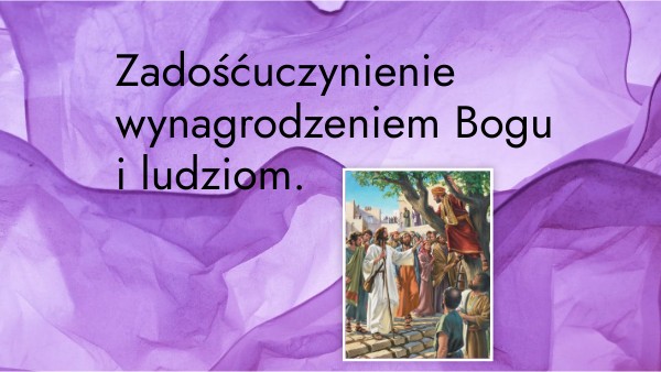 Jezus w sakramencie pokuty odpuszcza ci grzechy. Ty też możesz i powinieneś zadośćuczynić Bogu i ludziom tak jak Zacheusz.