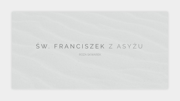 Franciszek z Asyżu, właściwie Giovanni Bernardone, nazywany Biedaczyną z Asyżu to włoski duchowny katolicki, diakon, założyciel zakonu franciszkanów, urodzony w 1181 lub 1182r. w Asyżu. Jego ojcem był zamożny kupiec, sukiennik umbryjski Pietro Bernardone, zaś matką, pochodząca z Pikardii Pika. Źródła podają, że Franciszek miał brata o imieniu Anioł. Pierwsze lata swego życia spędził w Asyżu. Uczęszczał do parafialnej szkoły przy kościele św. Jerzego, gdzie zdobył podstawowe wykształcenie.