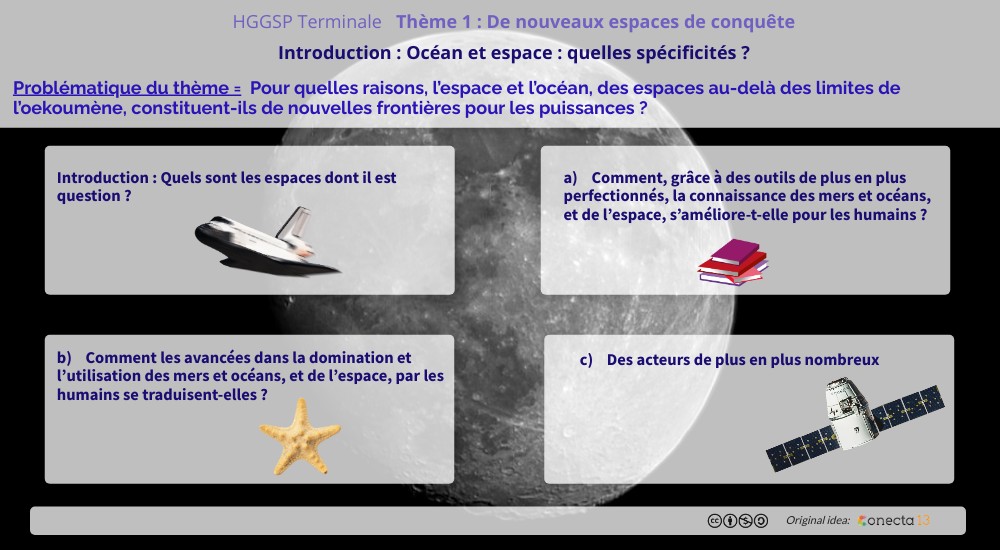 Problématique du thème = Pour quelles raisons, l’espace et l’océan, des espaces au-delà des limites de l’oekoumène, constituent-ils de nouvelles frontières pour les puissances ?