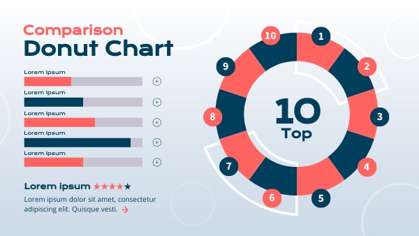 Use this free Comparison Donut Chart template to compare data and evaluate products or features. Includes 3 interactive infographics with clickable hotspots, rankings, and A B diagrams.