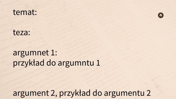 temat: teza: argumnet 1: przykład do argumntu 1 argument 2, przykład do argumentu 2