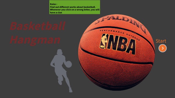 Rules : Find out different works about basketball. Whenever you click on a wrong letter, you will have a clue