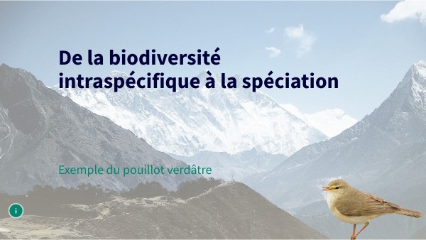 Il y a 10 000 ans, des individus de l'espèce Phylloscopus trochiloides se sont séparés pour migrer vers le nord du plateau tibétain en passant soit par l'ouest, soit par l'est . Au cours de cette migration, les populations ayant migré de chaque côté de l'Himalaya ont accumulé des mutations différentes. Par exemple, sur le gène que nous avons étudié, la population Ph.t. viridanus présente trois mutations par rapport à la population Ph.t. trochiloides tandis que la population Ph.t. plumbeitarsus en présente quatre à des positions différentes. Ces mutations sont à l'origine de différences de motifs au niveau du plumage de leurs ailes. Par ailleurs, au fur et à mesure de leur migration, les chants des différentes populations ont évolué différemment et se sont complexifiés : le chant de la population Ph.t. trochiloides est composée d'une répétition d'une seule syllabe tandis que les chants des populations Ph.t. viridanus et Ph.t. plumbeitarsus sont composés de trois types de syllabes différentes. Ajourd'hui, deux sous-populations se sont rejointes au nord de l'Himalaya et cohabitent mais lors des parades sexuelles les femelles d'une population ne reconnaissent pas le chant ni les motifs du plumage des mâles de l'autre population. Ces individus ne peuvent donc pas se reproduire entre eux. Un phénomène de spéciation est en cours : deux espèces différentes ont émergé à partir d'une espèce ancestrale.