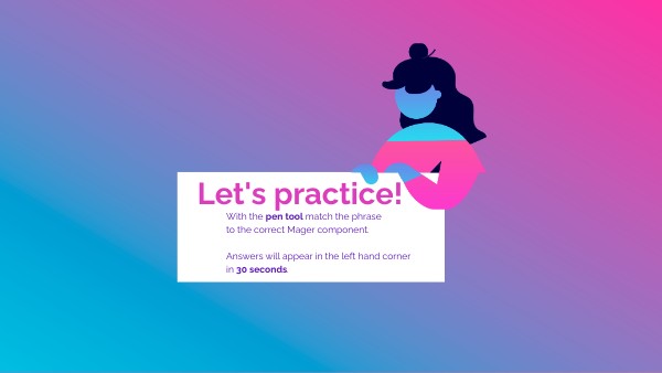 With the pen tool match the phrase to the correct Mager component. Answers will appear in the left hand corner in 30 seconds.