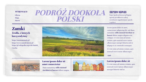 https://mosznazamek.pl/ https://www.zamek-lancut.pl/ https://pl.wikipedia.org/wiki/Zamek_Czocha
