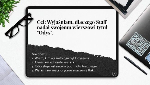 Cel: Wyjaśniam, dlaczego Staff nadał swojemu wierszowi tytuł "Odys".