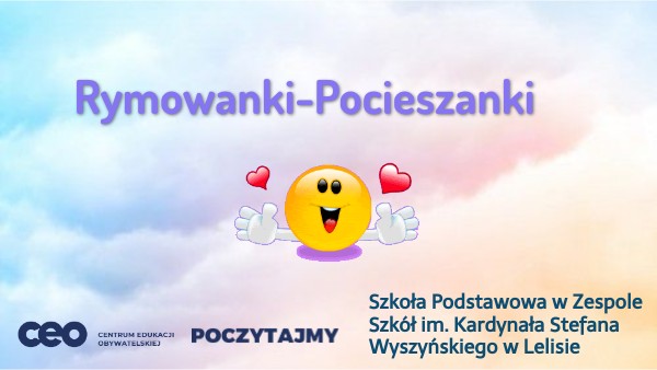 O mojej szkole w Lelisie, Będzie dużo w opisie. Atmosfera jest wzrorowa, Doskonała i kultowa. Nauczyciele są wspaniali, Pomocni i doskonali. W naszej szkole znajdziesz wszystko, Klasy, szatnie i boisko. Każdy z nas pochłania wszystko, Dużo wiedzy i nie tylko. Poznajemy cały świat, Od wagarów trzymamy się wspak. Pan od w-f fajny jest, bo zaprasza nas na SKS. Na stołówce pyszne zupy dają, Bo Panie kucharki bardzo się starają. Biblioteka nieopodal jest I dlatego szkoła w Lelisie jest THE BEST!