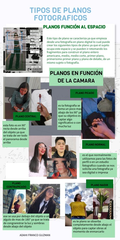 Este tipo de plano se caracteriza ya que empieza desde una fotografía en plano digital lo cual puede crear los siguientes tipos de plano ya que el sujeto ocupa este espacio y se pueden ir retomando los fragmentos para construir el plano entero americano, medio, medio corto, primer plano, primerisimo primer plano y plano de detalle, de un mismo sujeto o fotografía.