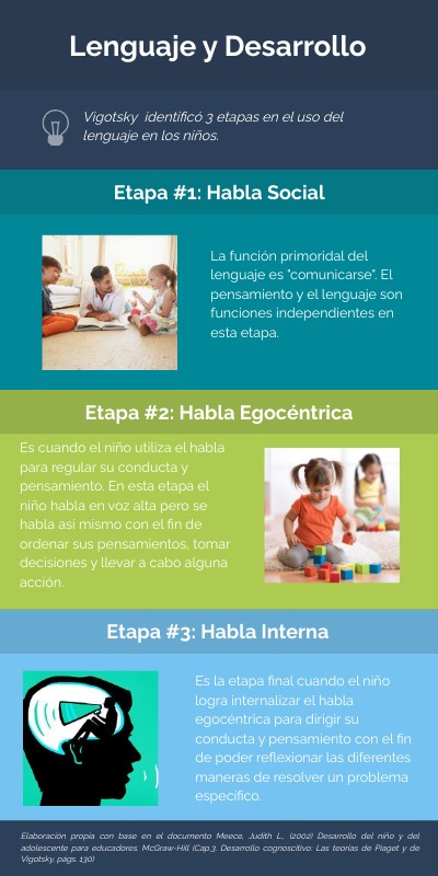 Vigotsky identificó 3 etapas en el uso del lenguaje en los niños.