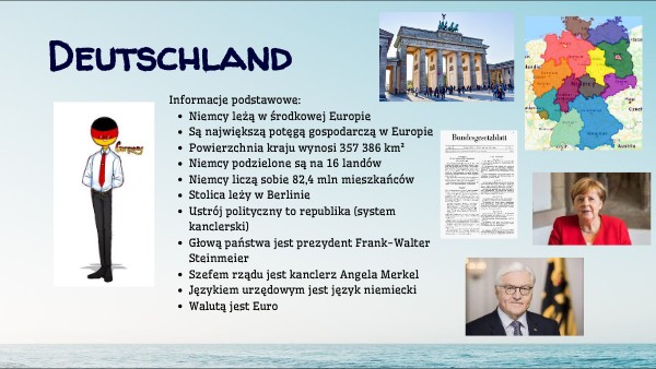 - Głową państwa jest prezydent Frank-Walter Steinmeier