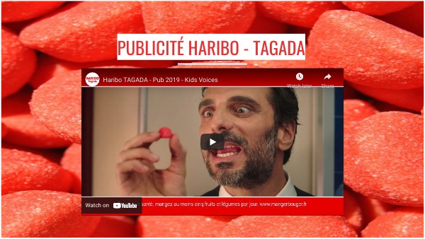 Cette vidéo publicitaire souhaite promouvoir le nouveau produit de la marque Haribo : les fraises Tagada.