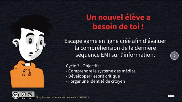 Escape game en ligne créé afin d'évaluer la compréhension de la dernière séquence EMI sur l'information.
