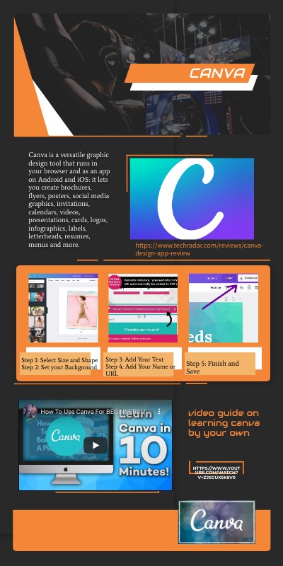 Canva is a versatile graphic design tool that runs in your browser and as an app on Android and iOS: it lets you create brochures, flyers, posters, social media graphics, invitations, calendars, videos, presentations, cards, logos, infographics, labels, letterheads, resumes, menus and more.