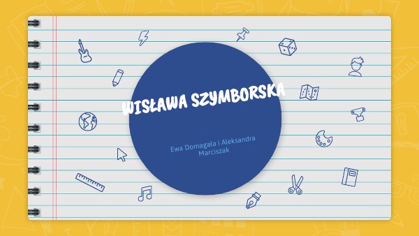 Wisława Szymborska to polska poetka, która urodziła sie w 1923r. w Kórniku i zmarła w 2012r. w Krakowie. Mature uzyskała na tajnych kompletach. Po wojnie studiowała polonistyke i socjologie. Prowadziła dział poezji w czasopiśmie "Życie Literackie". Debiutowała wierszem "Szukam słowa" na łamach dodatku do "Dziennika Polskiego". Wydała wiele tomików wierszy i dostała nagrode Nobla.