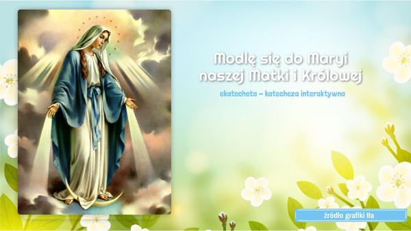 – Co otacza postać Maryi? – Co jest pod Jej stopami? – Ile gwiazd ma wieniec nad głową Maryi? – Jak możemy nazwać Maryję, która jaśnieje w słońcu?