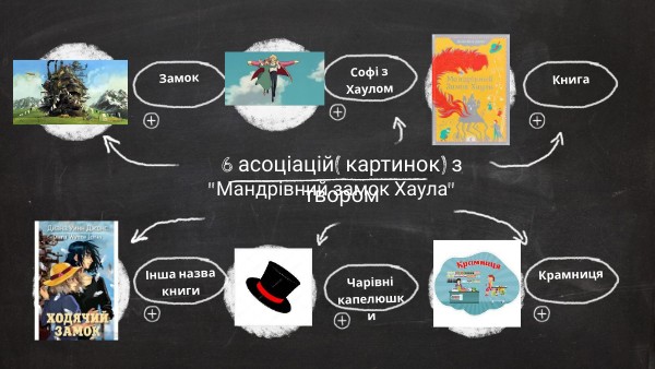 6 асоціацій( картинок) з твором