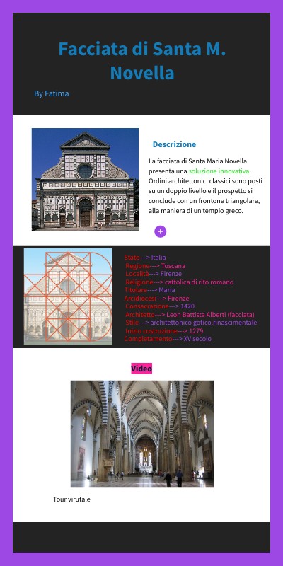 Stato---> Italia Regione---> Toscana Località---> Firenze Religione---> cattolica di rito romano Titolare---> Maria Arcidiocesi---> Firenze Consacrazione---> 1420 Architetto---> Leon Battista Alberti (facciata) Stile---> architettonico gotico,rinascimentale Inizio costruzione---> 1279 Completamento---> XV secolo