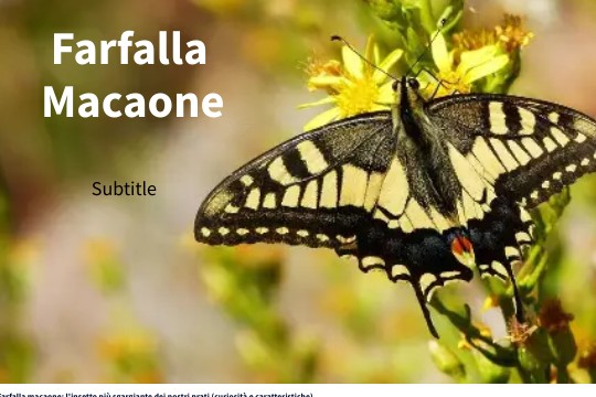 La farfalla macaone è una farfalla elegante e coloratissima; ama il caldo ed è particolarmente territoriale, soprattutto i maschi. Le ali posteriori terminano con un paio di code sporgenti. L’adulto ha le ali giallo crema con venature nere.