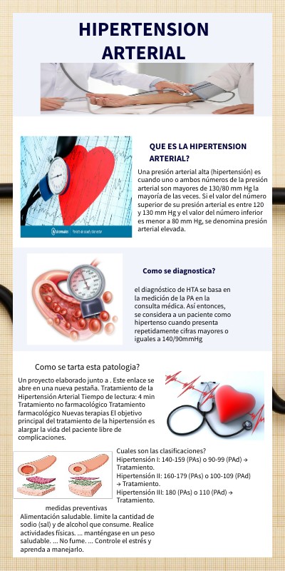 el diagnóstico de HTA se basa en la medición de la PA en la consulta médica. Así entonces, se considera a un paciente como hipertenso cuando presenta repetidamente cifras mayores o iguales a 140/90mmHg