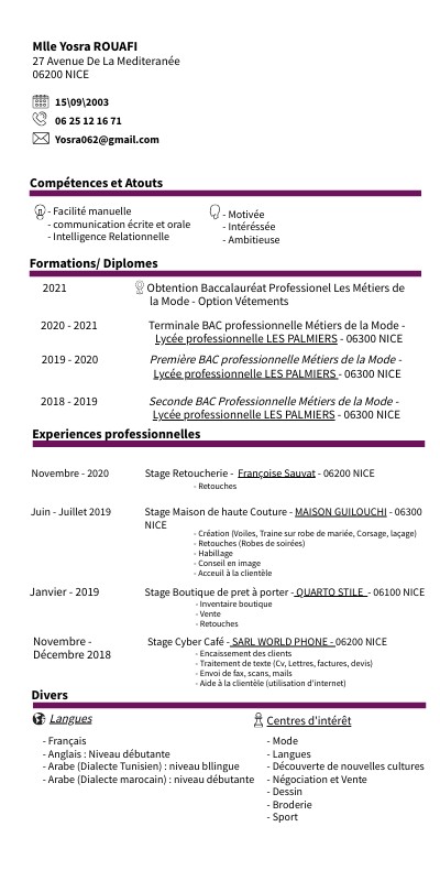 2020 - 2021 Terminale BAC professionnelle Métiers de la Mode - Lycée professionnelle LES PALMIERS - 06300 NICE