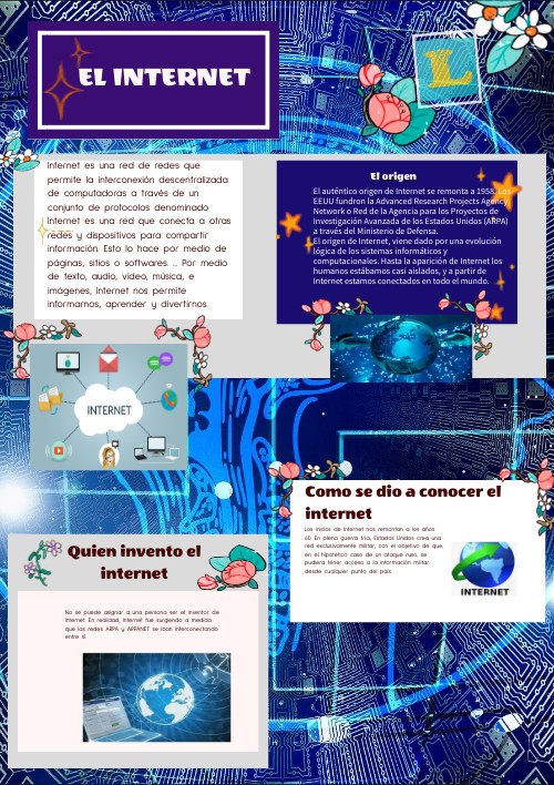 Internet es una red de redes que permite la interconexión descentralizada de computadoras a través de un conjunto de protocolos denominado Internet es una red que conecta a otras redes y dispositivos para compartir información. Esto lo hace por medio de páginas, sitios o softwares. ... Por medio de texto, audio, video, música, e imágenes, Internet nos permite informarnos, aprender y divertirnos.