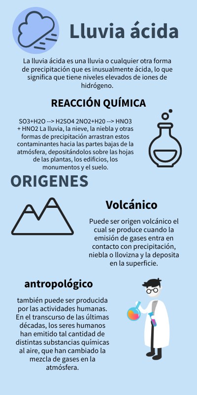 La lluvia ácida es una lluvia o cualquier otra forma de precipitación que es inusualmente ácida, lo que significa que tiene niveles elevados de iones de hidrógeno.
