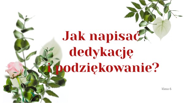 1. Napisz KOMU, Z JAKIEJ OKAZJI ofirowujesz. 2. W podpisie poinformuj, że jesteś autorem dedykacji- zamieść swoje imię i nazwisko lub słowo, którym zwraca sie do Ciebie odbiorca. 3. Zapisz nazwę miejscowości i datę. 4. Pamiętaj, aby dostosować styl wypowiedzi do adresata i sytuacji. 5. Zadbaj o estetykę zapisu.