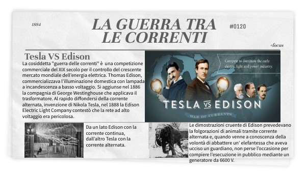 Da un lato Edison con la corrente continua, dall’altro Tesla con la corrente alternata.