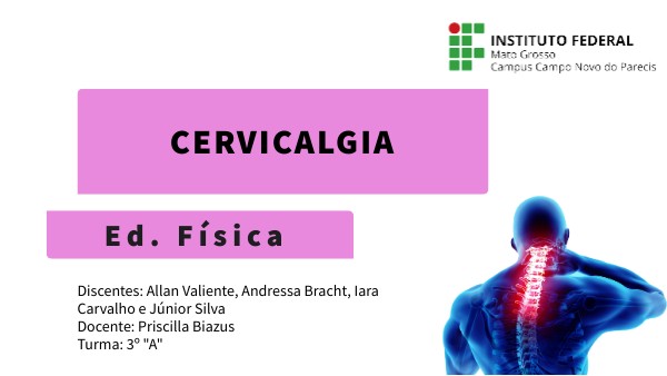 - MONTENEGRO, Helder. CERVICALGIA: entenda sobre. ENTENDA SOBRE. 2019. Disponível em: https://www.itcvertebral.com.br/cervicalgia/#:~:text=O%20paciente%20com%20cervicalgia%20costuma,para%20todo%20o%20membro%20superior.. Acesso em: 10 maio 2021.