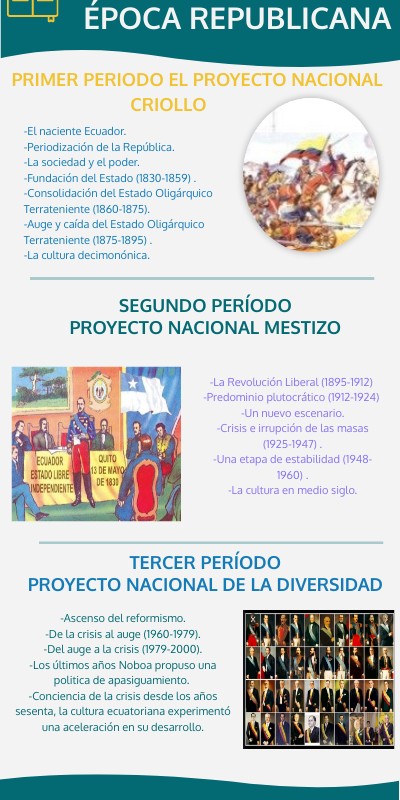 -El naciente Ecuador.-Periodización de la República. -La sociedad y el poder. -Fundación del Estado (1830-1859) . -Consolidación del Estado Oligárquico Terrateniente (1860-1875). -Auge y caída del Estado Oligárquico Terrateniente (1875-1895) . -La cultura decimonónica.