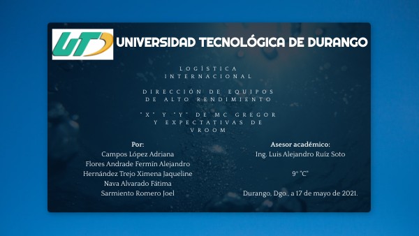 LOGÍSTICA INTERNACIONAL DIRECCIÓN DE EQUIPOS DE ALTO RENDIMIENTO "X" Y "Y" DE MC GREGOR Y EXPECTATIVAS DE VROOM