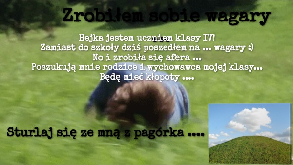 Hejka jestem uczniem klasy IV!Zamiast do szkoły dziś poszedłem na ... wagary :) No i zrobiła się afera ... Poszukują mnie rodzice i wychowawca mojej klasy... Będę mieć kłopoty ....