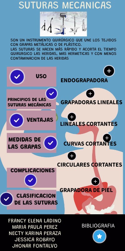 Son un instrumento quirúrgico que UNE los tejidos con grapas metálicas o de plástico. Las suturas se hacen más rápido Y ACORTA eL TIEMPO QUIRURGICO las heridas, MAS HERMETICAS Y CON MENOS CONTAMINACION DE LAS HERIDAS
