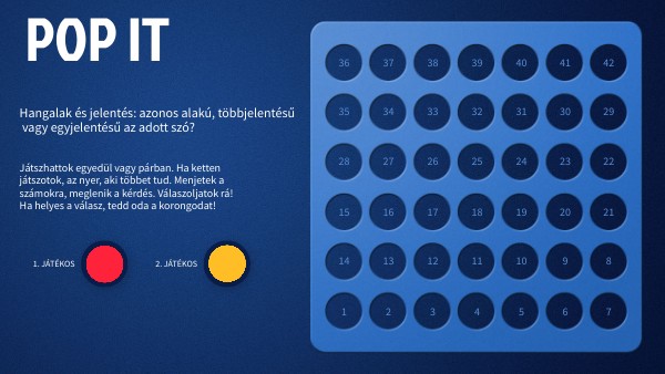 Játszhattok egyedül vagy párban. Ha ketten játszotok, az nyer, aki többet tud. Menjetek a számokra, meglenik a kérdés. Válaszoljatok rá! Ha helyes a válasz, tedd oda a korongodat!