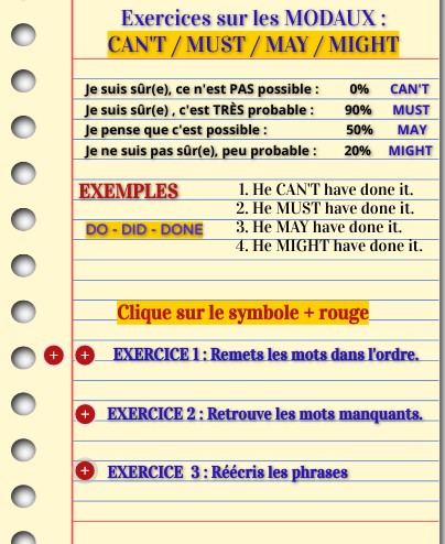 Exercices sur les MODAUX : CAN'T / MUST / MAY / MIGHT