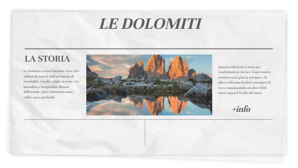 Descrizione sulle Dolomiti e varie informazioni e riferimenti a cenni storici