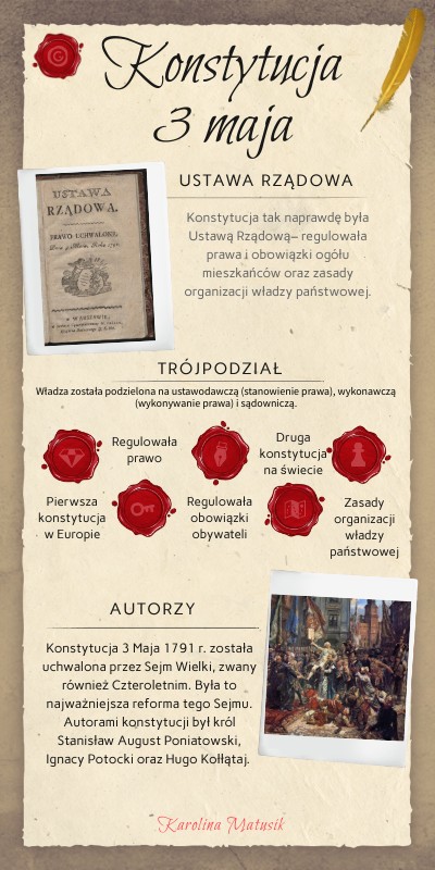 Konstytucja 3 Maja 1791 r. została uchwalona przez Sejm Wielki, zwany również Czteroletnim. Była to najważniejsza reforma tego Sejmu. Autorami konstytucji był król Stanisław August Poniatowski, Ignacy Potocki oraz Hugo Kołłątaj.