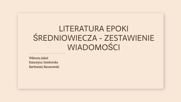 literatura epoki Średniowiecza - zestawienie wiadomości